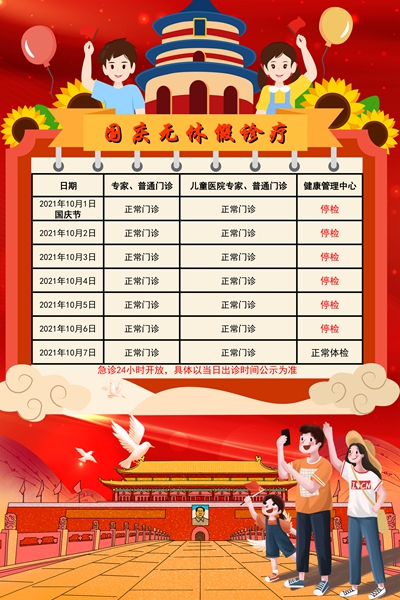 南京明基医院2021年国庆节门急诊安排