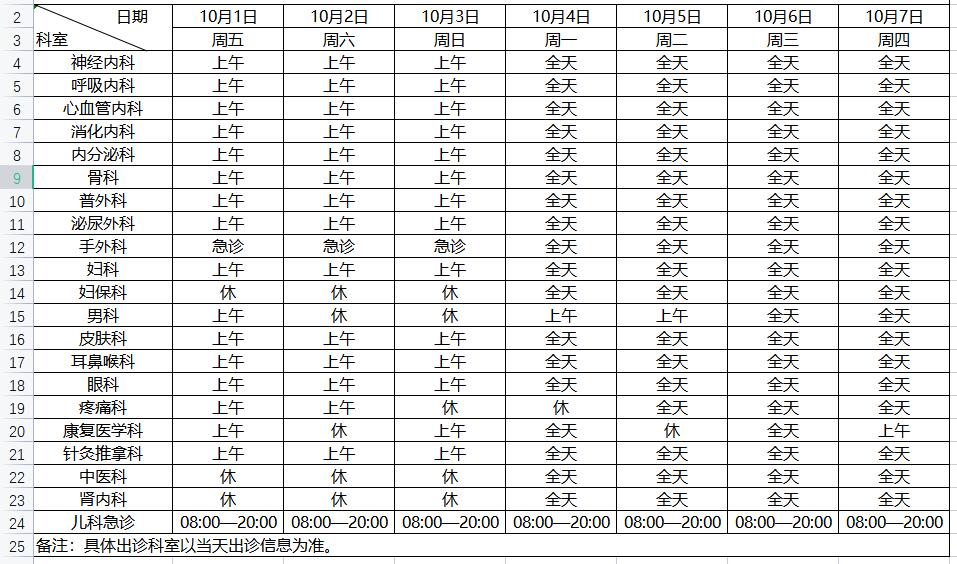 南医大四附院(京新院区、浦园院区)2021年国庆节门急诊安排