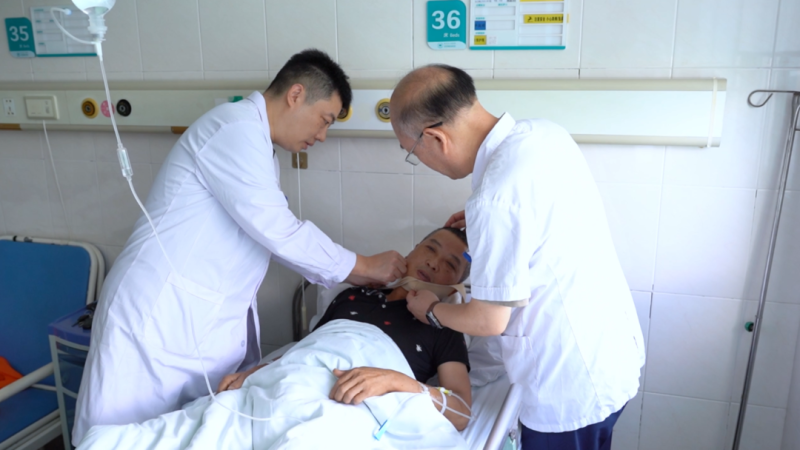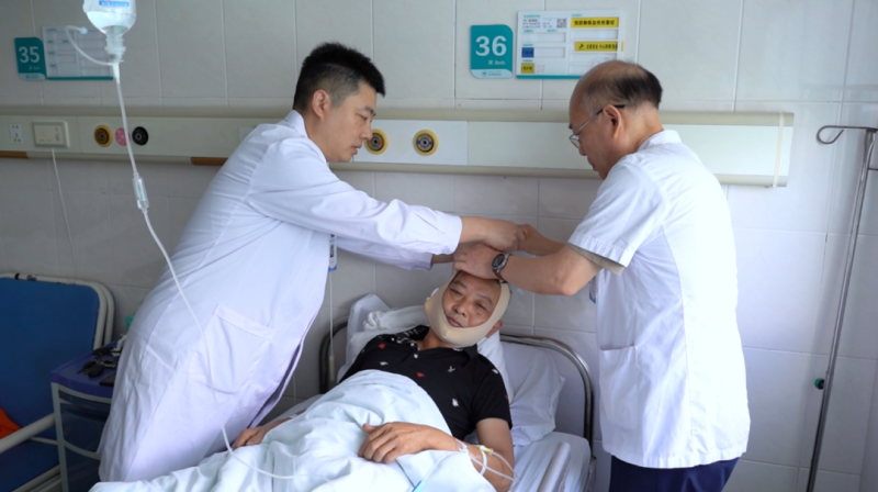 术后第二天,徐克和顾晓宇医生查房,为了测试下患者的言语功能,让谢先生随便说几句交流下,谢先生激动地说:“谢谢医生!”