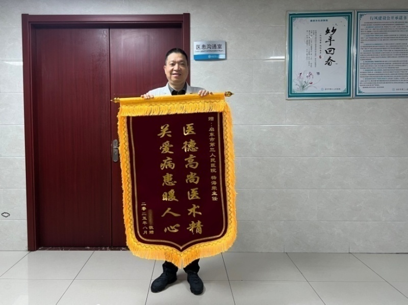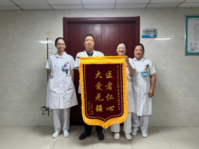 两面锦旗,不仅是患者对杨海荣主任精湛医术与高尚医德的真诚赞誉,更是对泌尿外科整个团队专业服务与人文关怀的高度认可。健康所系,性命相托。病患的信任,始终是医护人员砥砺前行的不竭动力。未来,我们将不断精进医疗技术,提升服务品质,以更加优质、高效的诊疗,为每一位患者的健康保驾护航,用专业和温暖,帮助患者重获健康,拥抱幸福生活。(朱佳美)