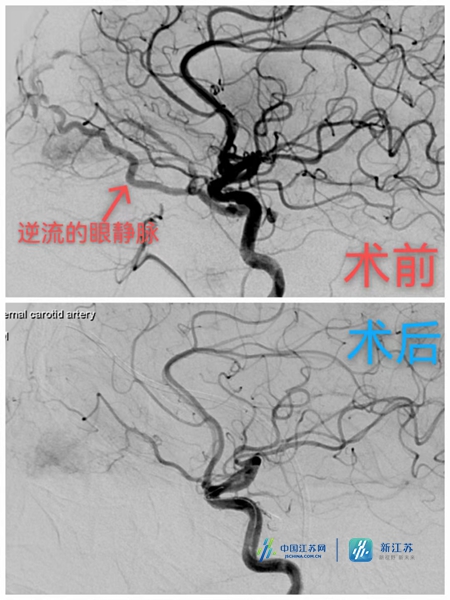新江苏·中国江苏网讯 (记者 孙骏 通讯员 章琛)57岁的许女士今年年初以来出现左眼结膜充血、眼部胀痛、眼球突出等症状,家人以为是“突眼症”。没想到竟然是一种少见的血管病---海绵窦区动静脉瘘。近期,经过南京市第一医院介入血管科团队治疗后,许女士眼睛充血及眼部胀痛的症状完全消失,视力恢复正常,平稳度过了术后观察期,顺利出院。