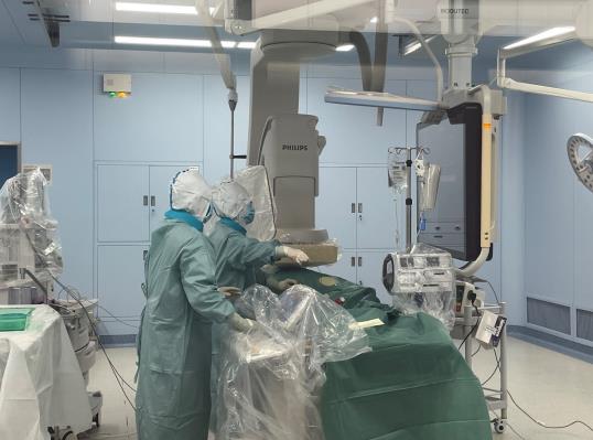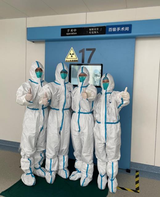 康丽娜主任医师介绍,急性心梗介入治疗是一项高风险手术,要求术者有高超的技术和应变力。即使在平时,空调手术间内,穿着几十斤重的铅衣,也经常汗如雨下。更何况疫情期间,除了铅衣之外,还要裹上密不透气的防护服,戴上双层口罩、双层手套,这不仅是对手术人员身体素质的极大挑战,同时也是对手术医生技术的严格考验。