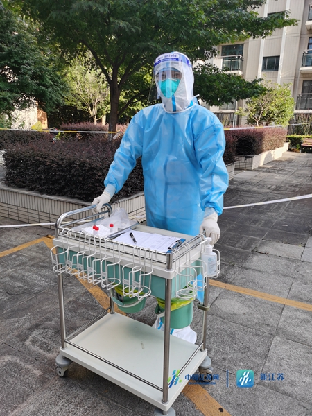 8月4日,南医大二附院29名医护前往栖霞区10个集中医学观察场所进行支援,29名医护人员中有7名医生和22名护士,口腔科医生蒋勇是其中的一员。在隔离点,蒋勇主要负责医疗组的工作,核酸采集、测温、查房以及巡诊送药等。记者了解到,蒋医生是今年新入党的党员,平时工作认真负责,积极向上,家里多位长辈都是老党员,“他们非常支持我为南京的抗疫做一些贡献”。蒋勇告诉记者,8月6日,岳母专门从新疆飞到南京帮忙照顾妻子。