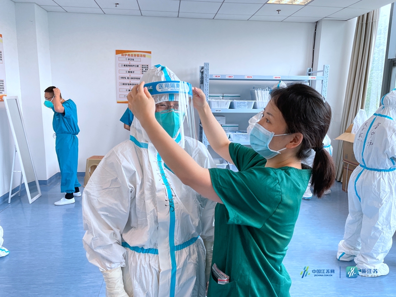 为了确保医护人员和患者的医疗安全,该院派出感染管理办公室孙慧副主任护师等感控专家随队常驻病区。入驻后,医疗队队长、呼吸科主任中医师魏瑜带领医疗队感控专家第一时间和南京市第二医院汤山院区工作人员对接,对病区感控情况仔细摸排,对需整改的地方认真梳理,并及时做出了调整建议。此外,还组织了多次线上、线下的医护人员防护服穿脱、隔离病区清洗消毒等培训。孙慧副主任护师说:“我们对大家的感控要求很严格,但没人嫌我们‘事儿多’,每位队员都非常配合。”