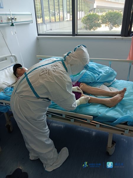 C2-1病区的患者们每天最高兴的就是医生查房,听说是江苏省中医院的医护人员负责医疗工作,大家更是盼望着能用上中医药的治疗方法。病区里的一位阿姨跟护士说:“之前看武汉抗疫时中医药发挥了很大作用,我们信赖中医,也想试试!”