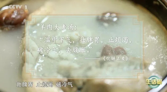 羊肉大麦汤,有利于保持肠胃功能健康;有利于提升阳气、抵御寒冷;帮助增强体质、提高免疫力;帮助健脾胃、促进消化。