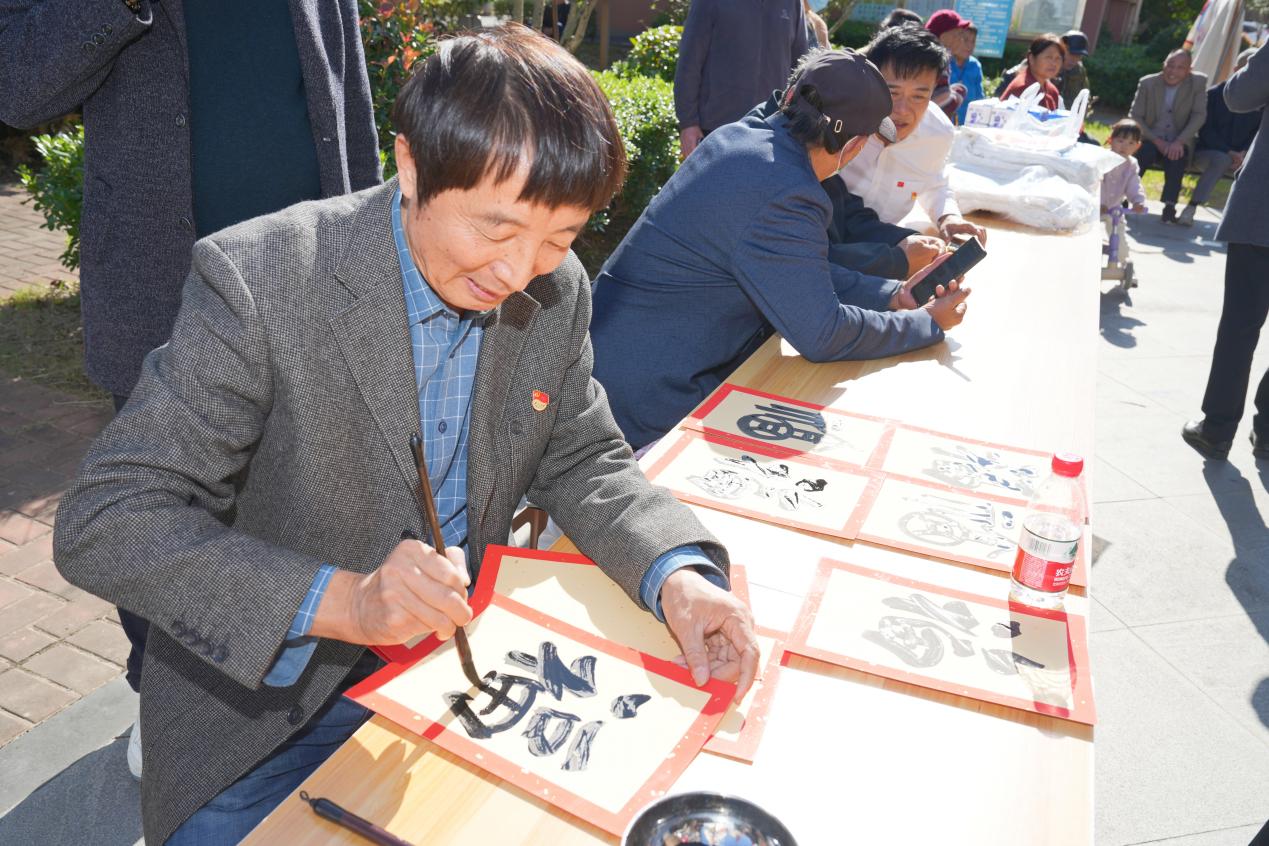 诊疗区之外,传统文化展演同样精彩纷呈。学生们精神饱满地演示了八段锦、五禽戏,一招一式,刚柔并济,引得居民们纷纷模仿学习。一旁的书法案台前,浦口区书画名家挥毫泼墨,将饱含祝福的“福”“寿”字画赠予长者,为重阳佳节增添了浓厚的文化温情。