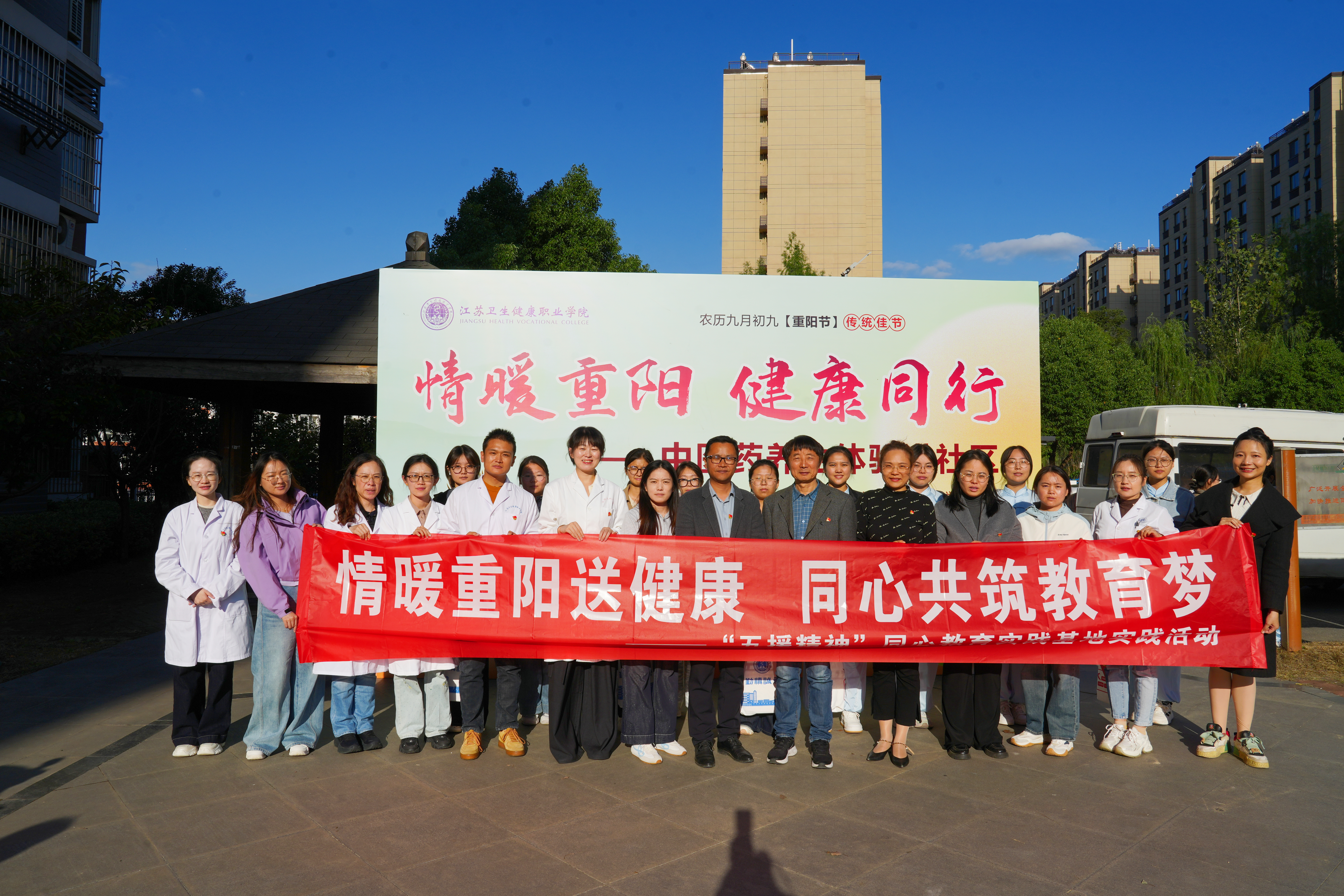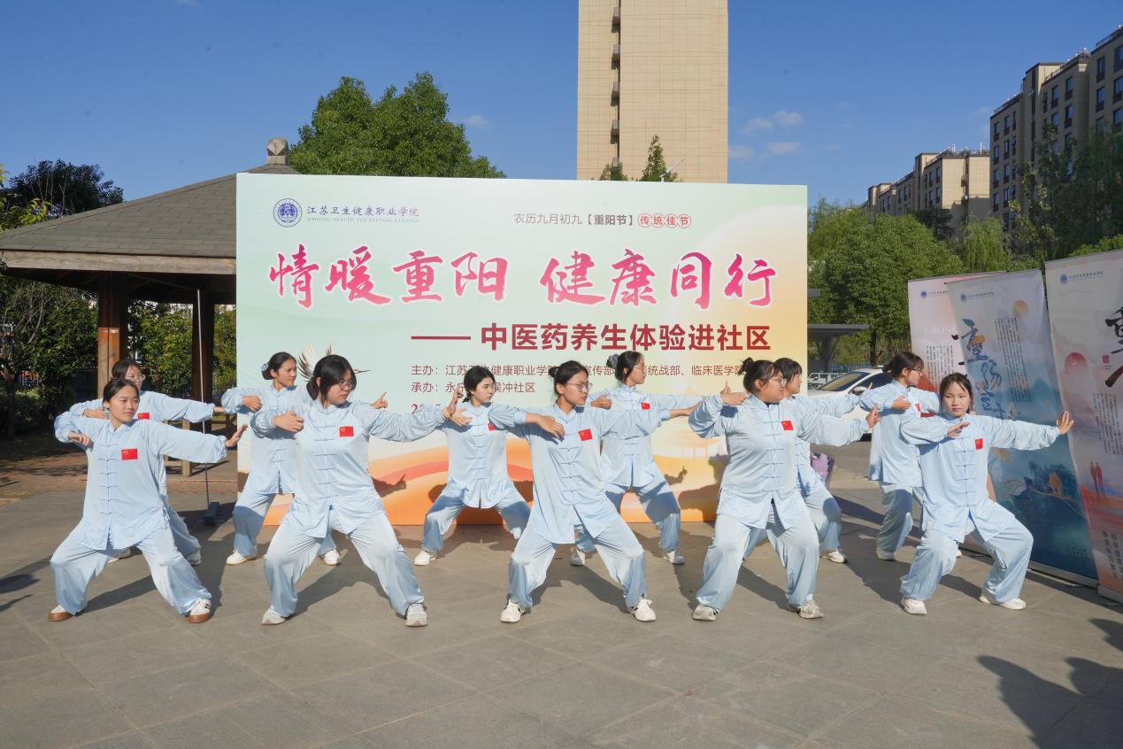 金秋十月,丹桂飘香。在重阳佳节来临之际,10月22日,江苏卫生健康职业学院携手南京市浦口区永宁街道侯冲社区,共同举办“情暖重阳送健康,同心共筑教育梦”主题实践活动。40余名师生志愿者将专业所学转化为服务热情,通过中医义诊、健康科普、八段锦教学等多元形式,为300余名社区居民送上健康与关怀。