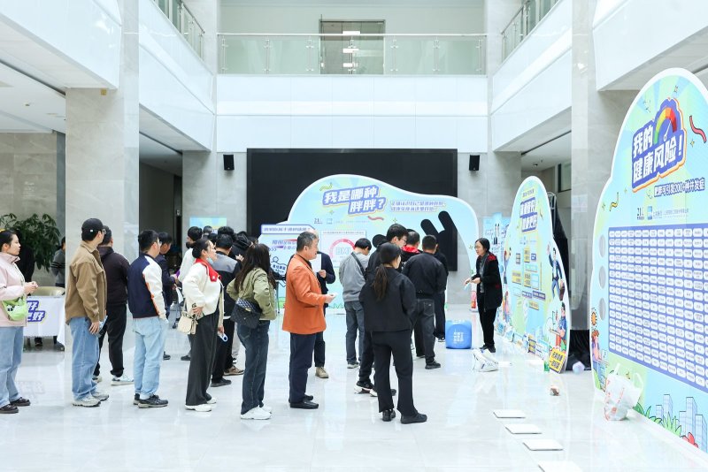 在“认识肥胖体测区”,员工通过专业设备实时测量BMI、腰围、体脂率等指标,生成个性化健康报告。