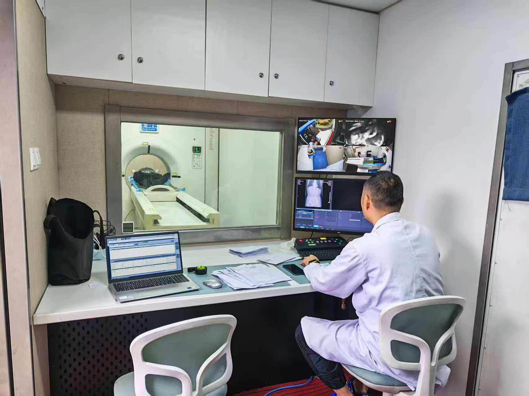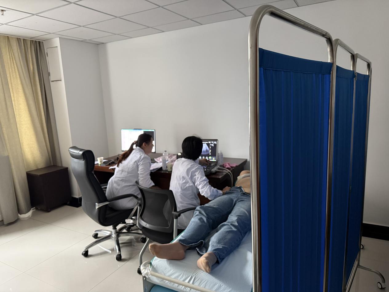 本次服务共覆盖企业职工约300人。医院统筹调配多台移动医疗设备,构建起集影像、超声、检验、内科等功能于一体的“移动早筛体检方舱”,实现一站式高效筛查。早筛体检项目涵盖胸部CT、全腹部CT、甲状腺及泌尿系统超声、血常规、肝功能、肿瘤标志物检测等,并结合内科、血压等常规项目,体系完整、流程规范。尤其在肿瘤早筛方面,医院将标准化防癌筛查体系前置至企业现场,确保检查质量与院内同质同标,切实帮助职工实现疾病的早发现、早诊断、早干预。同时,还提供了远程超声检查,基于企业的5G 网络和图像融合的技术,跨越空间界限,超声专家通过机械臂实现超声图像的实时呈现。