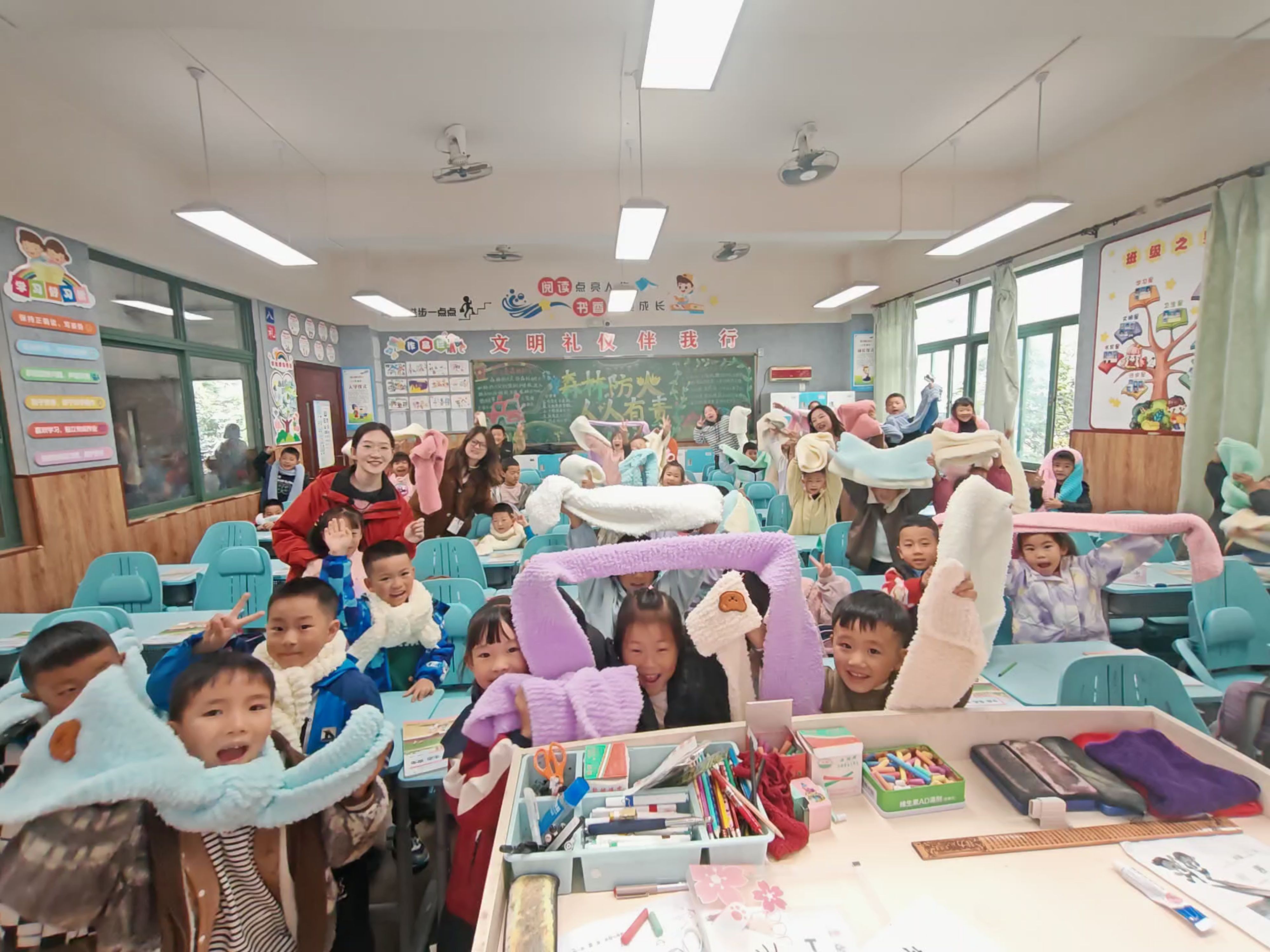 校第27届研究生支教团队长尹紫含老师将孩子们戴着围巾的照片和感谢信寄了回来。她说:“孩子们收到围巾都特别喜欢,非常开心,放学都是戴着围巾回家的。”有的小朋友在回信中说:“收到你的来信心里扬起一片暖洋。你亲手织的围巾,给我在冬天又添了温暖,让我勇敢面对困难,希望你找到一份你满意的工作!”“姐姐记得有空来汶川玩!冬天的汶川,可以在山沟里玩雪;春天的汶川,可以在山脚下野炊;夏天的汶川,可以在小河边玩水;秋天的汶川,可以在山野中观赏红叶。”