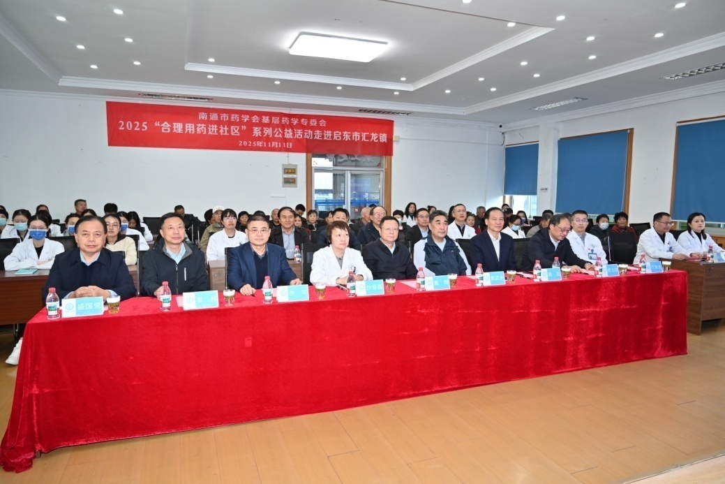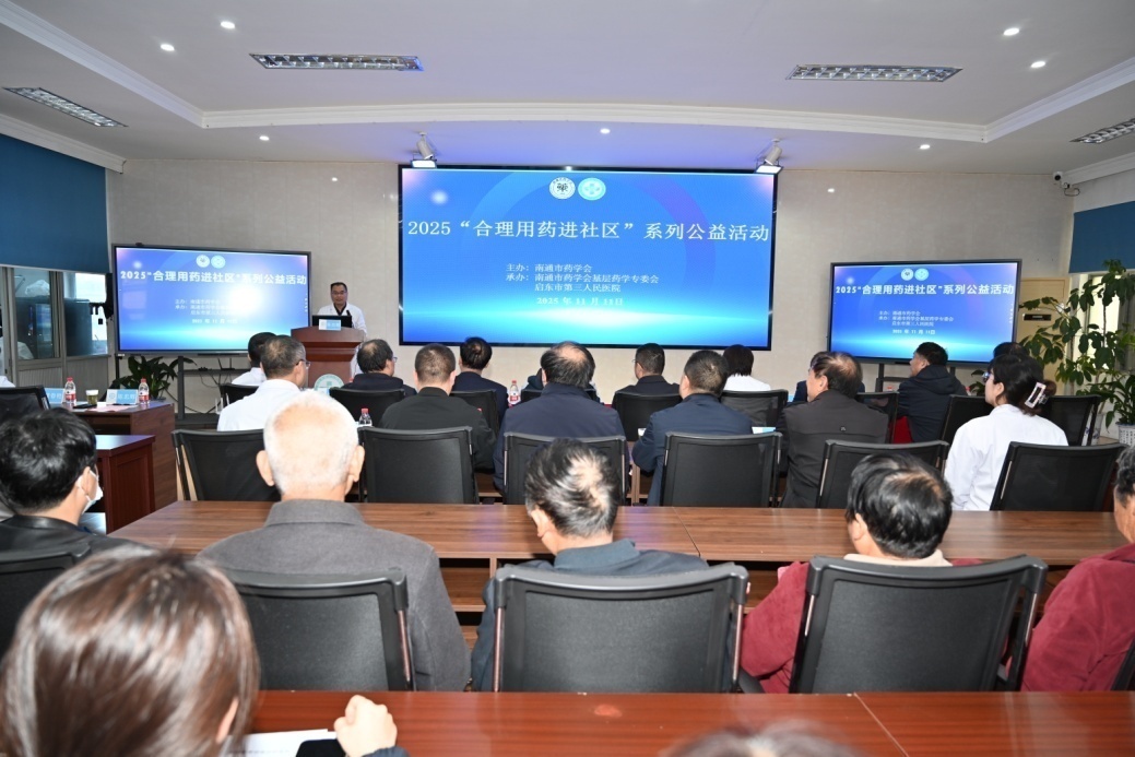 11月11日,南通市药学会基层药学专业委员会2025“合理用药进社区”系列公益活动启东站,在启东市第三人民医院圆满举行。南通市药学会理事长戴辉、常务副理事长郭武余、副理事长兼秘书长施忠、执行秘书长盛国荣,基层药学专委会主委李军、常务副主委缪宝迎及全体副主委、秘书、部分委员,启东市第三人民医院党总支书记沙春霞、院长沈漱波及相关领导出席活动。活动由启东市第三人民医院副院长陈忠辉主持,80余名社区居民踊跃参与,现场氛围热烈。