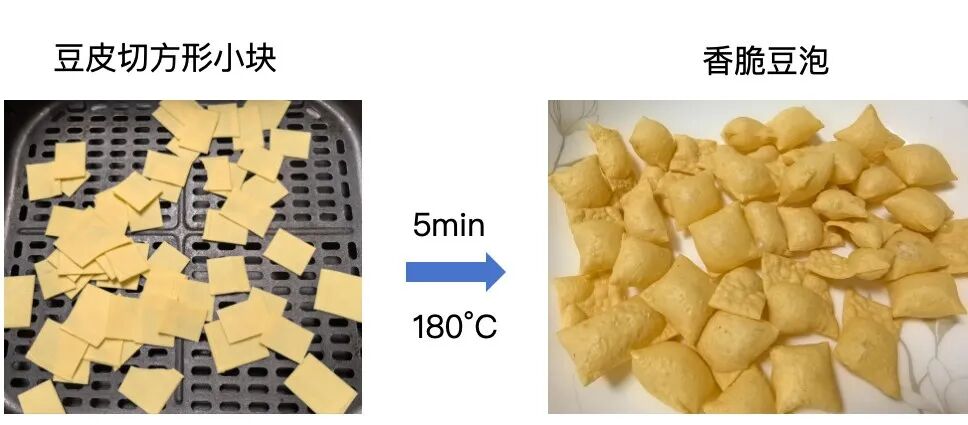 比如将豆皮剪成小块,放入空气炸锅烤制,预热后180°C烤5分钟,就能变成香脆的豆皮小零食;酱牛肉切成1毫米厚的薄片,用空气炸锅低温烤制,就能制作成牛肉干;馒头片也可以通过空气炸锅烤制成香脆的烤馍片。