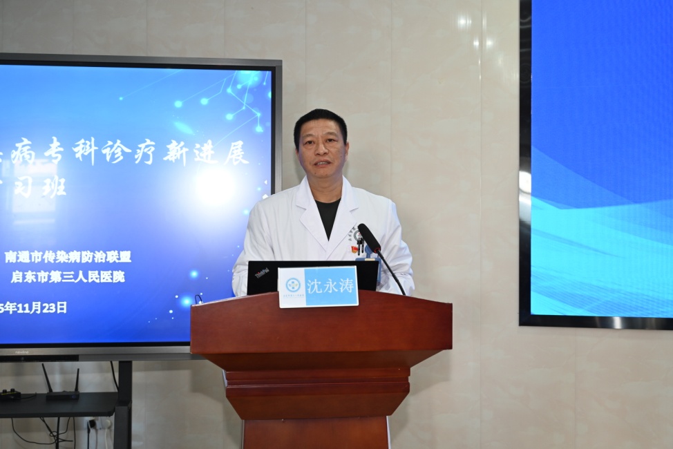 开幕式上,启东市第三人民医院副院长沈永涛致辞。他代表医院党总支欢迎各位领导、专家及同仁莅临,强调学习班是响应国家基层医疗能力提升部署、助力肝病防治事业发展的重要举措,期许大家互学互鉴、学有所成。同时介绍,启东市第三人民医院感染科作为启东市感染性疾病唯一法定收治科室、省市临床特色科室,在肝炎、肝硬化等诊疗领域经验丰富,且持续深化与沪宁通等地三级医院协作,为区域肝病防治服务体系筑牢基础。