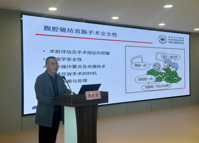 启东市人民医院普外一科主任陈凯荣以《提高腹腔镜结直肠手术安全性的关键技术环节》为题,从术前评估、肿瘤学安全、手术操作要点、中转开腹时机及术后管理五个方面,系统阐述了保障手术安全、减少并发症、促进患者康复的关键措施。