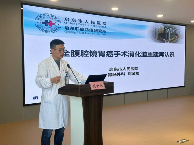 启东市人民医院普外一科副主任医师戴玲颖对《早期结直肠癌内镜切除术后追加手术中国专家共识(2025)》进行了解读,青年医师刘金龙分享了关于《全腔镜胃癌消化道重建的再认识》的临床思考与体会。