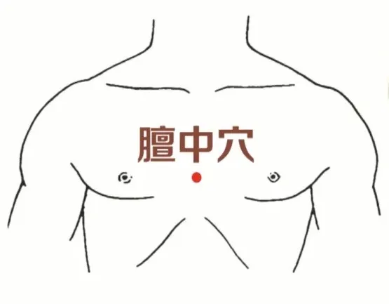 膻中穴位于两侧乳头正中央。以膻中穴为中心,上下左右轻柔按揉60次即可,力度以微酸胀感为宜。