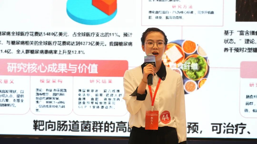 刘怡同学的汇报聚焦代谢健康领域,基于“富含膳食纤维的营养配方可调控肠道菌群结构,改善人体代谢状态”的核心理论,针对2 型糖尿病慢性并发症的预防与干预展开深入探索,兼具学术价值与临床应用前景。