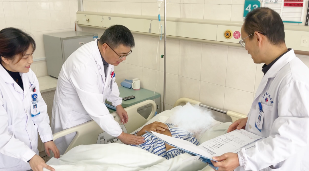 停药后不久,施大爷腹部胀痛愈发明显,进食后更是饱胀不适。一个月前,施大爷在家属陪同到本院就诊。接诊的普外二科副主任朱忠辉结合施大爷既往病史与临床检查,迅速明确诊断:胰腺肿瘤,并伴有肺气肿、高血压、脑梗死等基础疾病。