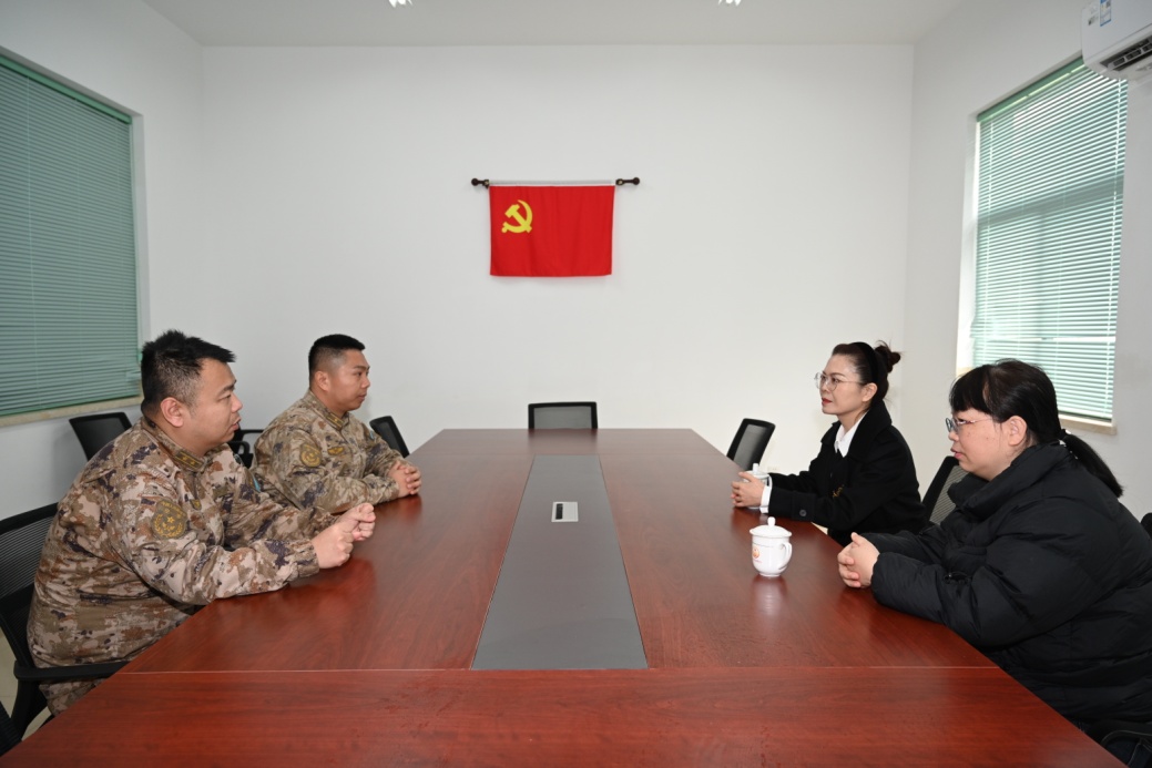 随后,慰问组走进空军驻启某部,受到部队官兵的热烈欢迎。季波副院长代表市三院,向常年坚守国防一线的全体官兵致以节日问候和崇高敬意,并感谢部队为地方发展稳定、守护人民生命财产安全作出的重要贡献。她表示,医院始终把双拥工作摆在重要位置,将以此次走访为契机,进一步深化军地共建,充分依托医疗专业优势,持续为官兵提供优质高效的诊疗服务,切实解决好官兵就医和家属健康等后顾之忧,全力支持部队建设与发展。部队领导对市三院的走访慰问表示感谢,并介绍了部队近期训练、建设与官兵生活情况。双方围绕加强军地医疗协作展开交流,达成多项共识,为进一步巩固军政军民团结、推动共建共赢奠定了坚实基础。