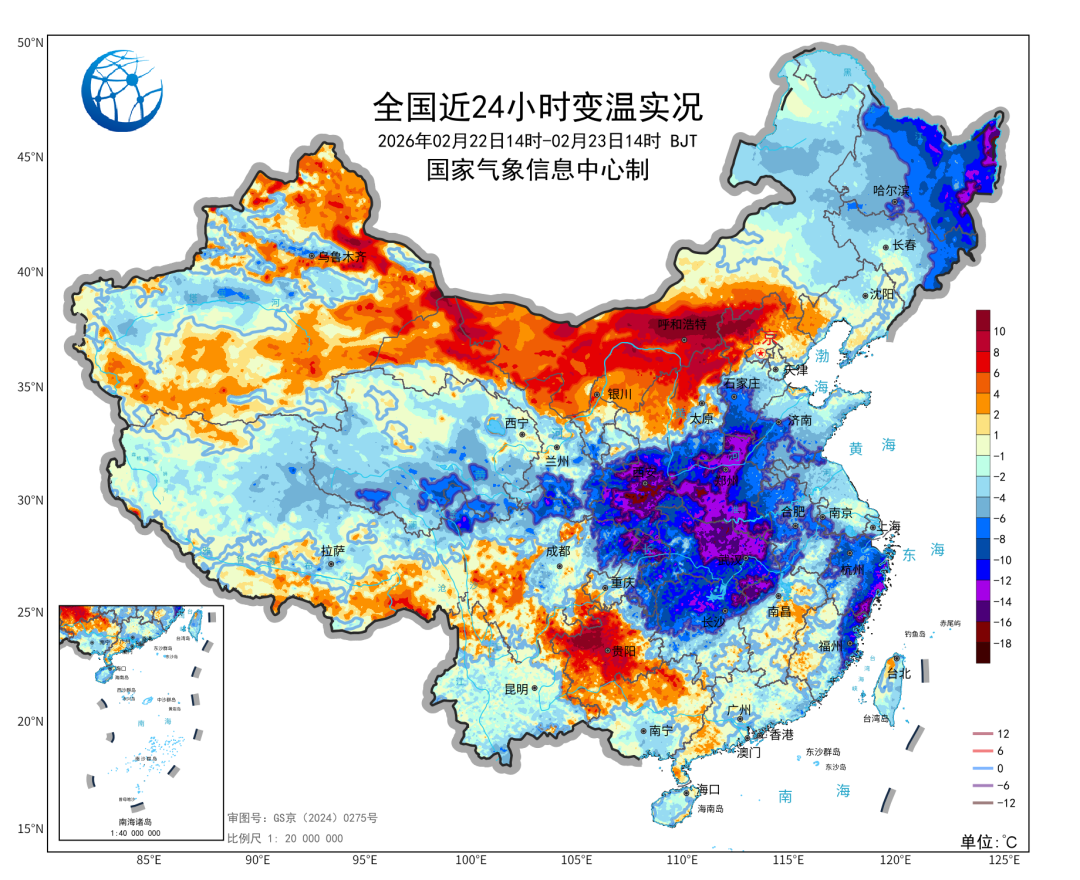 今天,冷空气东移南下,黑龙江东部、陕西中部和南部、山西南部、河北南部、河南大部、湖北大部、湖南北部、浙江东部等地降温幅度超过10℃,其中陕西、黑龙江等局地降幅超15℃,一秒切换“三九寒冬”模式。