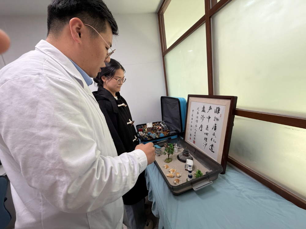 “中医心理沙盘融合了中西方诊疗理念,通过视听嗅触觉联动,借助沙具、沙盘及特质中药粉,可以帮助患者舒缓情绪、开放心神。”江苏省中医院神经内科副主任中医师、针药结合组组长李昀泽解释道。