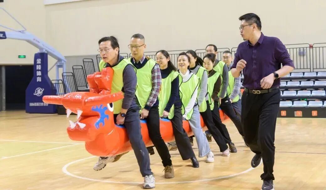 “旱地龙舟”项目里,队员们步调一致、默契配合,双手抓紧龙舟扶手,迈着整齐的步伐奋力向前,耳边是队友的鼓劲声,眼前是共同的目标,欢声笑语中,凝聚力悄然提升。