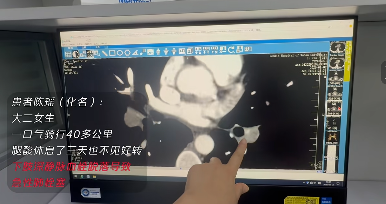 她以为只是乳酸堆积,结果三天后左腿肿粗、呼吸困难,紧急送医后,确诊为下肢深静脉血栓脱落导致的急性肺栓塞。