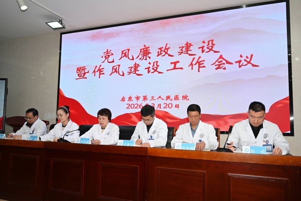 为深入贯彻落实启东市卫生健康系统党风廉政建设暨作风建设会议精神,压实全面从严治党责任,筑牢医院高质量发展纪律防线,3月20日下午,启东市第三人民医院召开党风廉政建设暨作风建设工作会议。院领导班子、全体中层干部、各党支部书记共100余人参加会议。会议由党总支委员、副院长陈威主持。
