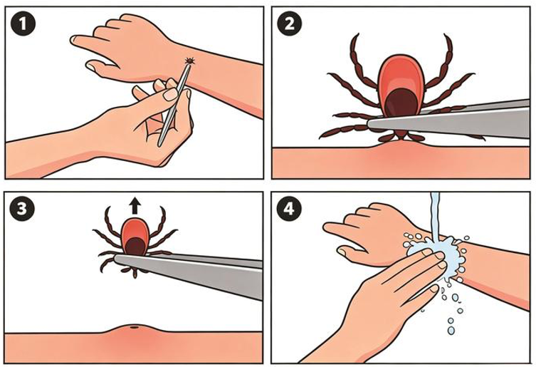 如果在身上发现了正在吸血的蜱虫,千万管住自己的手,不要拍,不要捏,不要硬拽!强行拉扯的话,蜱虫的口器会断在皮肤里,就像把一根带倒钩的针头留在肉里,反而更容易引发感染或刺激它吐出更多毒液。
